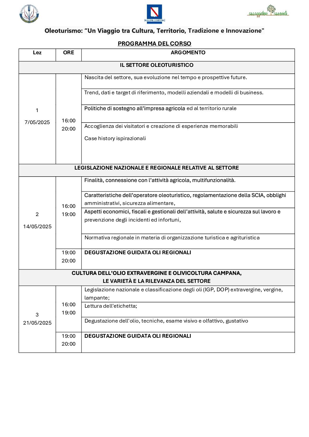 Gli studenti apprendono le basi della cultura dell’olio extravergine di oliva, tecniche di degustazione, comunicazione e promozione, gestione di esperienze turistiche legate all’olio. e tanto altro.